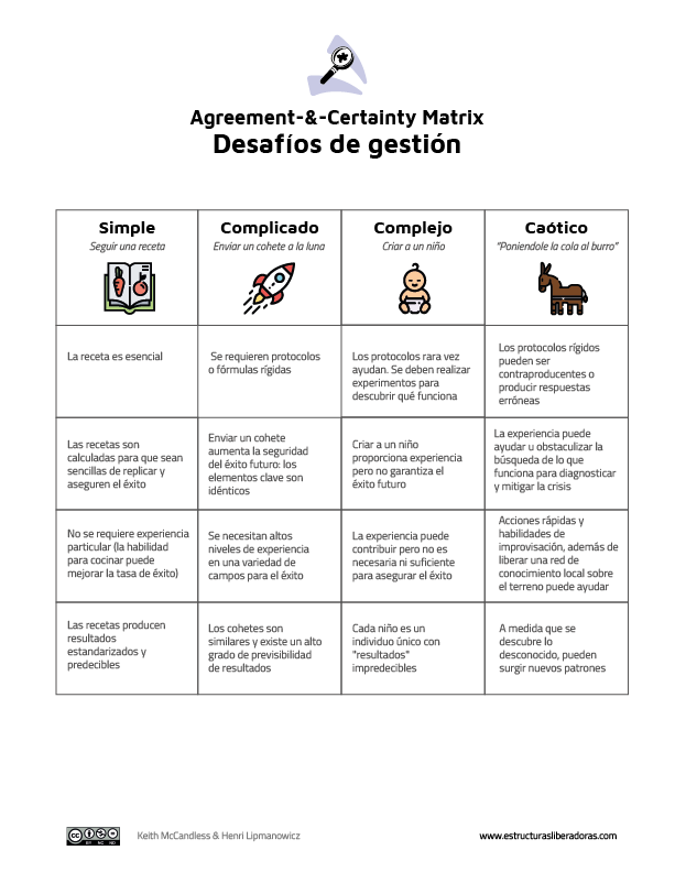 Desarrollada por Henri Lipmanowicz y Keith McCandless. Adaptado del trabajo de los profesores Ralph Stacey y Brenda Zimmerman.